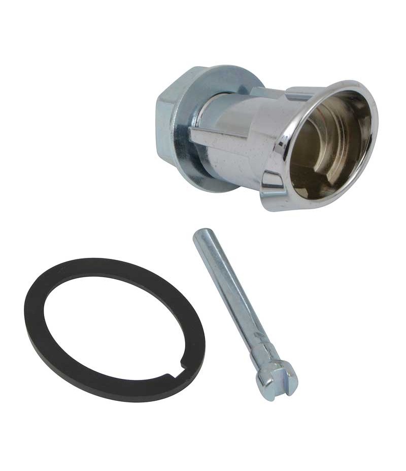 Extension and gasket reproduction of the original chrome bezel that surrounds and holds the trunk lock cylinder. Includes the washer nuts, trunk latch extension and rubber gasket. The trunk lock cylinder and spacer are sold separately.